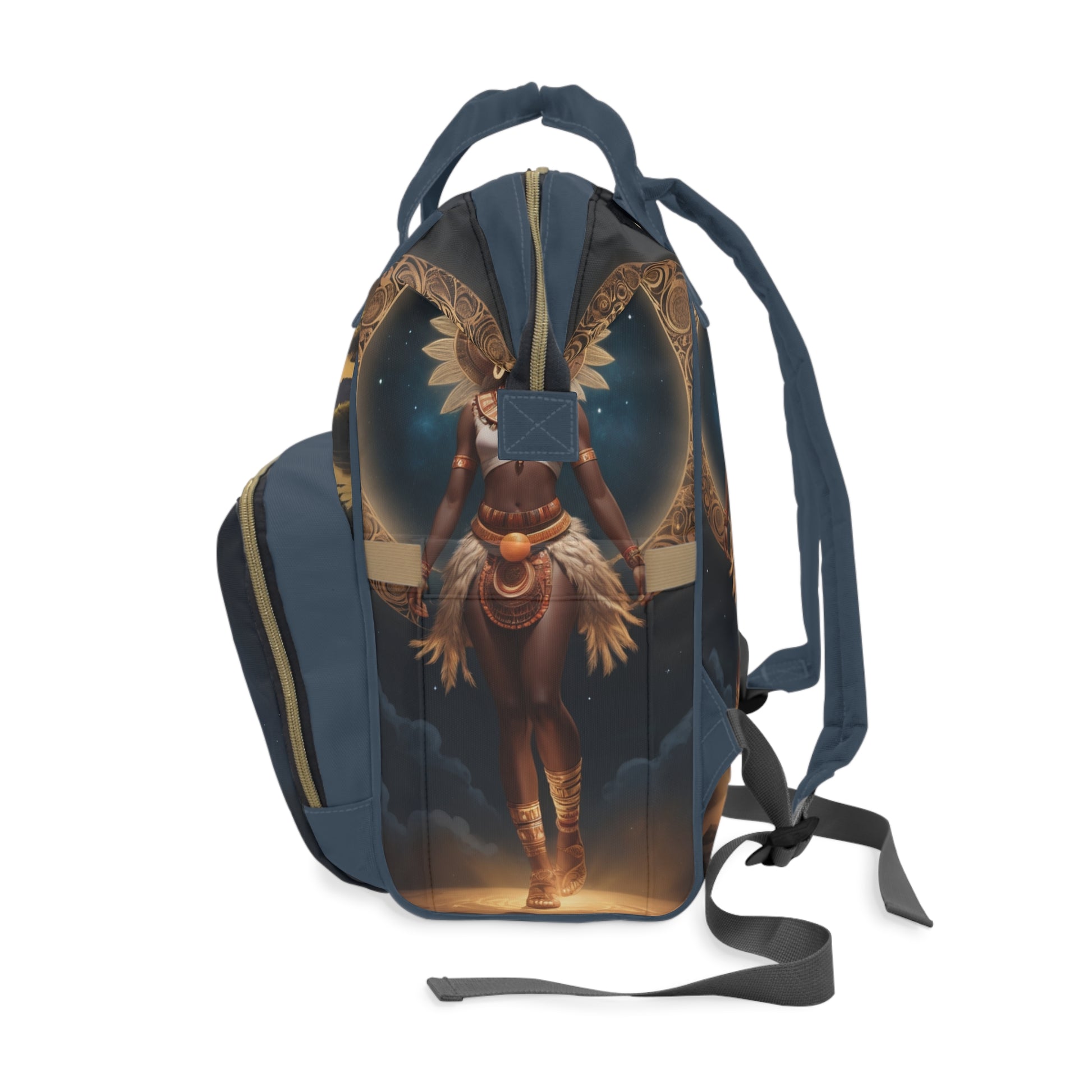 This design captures a magical Igbo princess dancing beneath the moon, symbolizing light, serenity, and the blessings of motherhood. The glowing moon and serene waters reflect peace, protection, and harmony. The name Amara means “grace” — making this bag not only functional but also a treasured cultural keepsake.