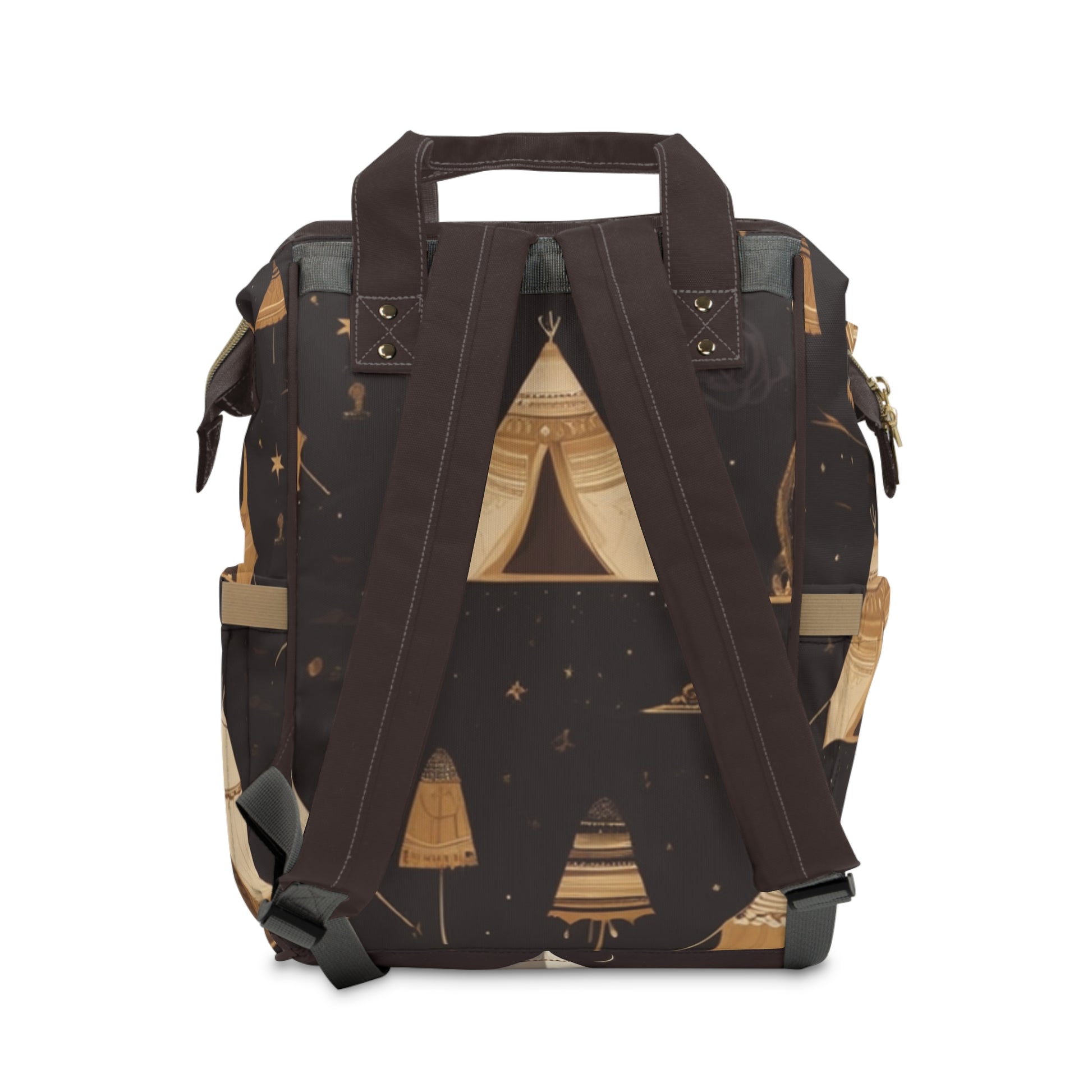 This Arabic-inspired design features a majestic desert tent with warm brown and gold accents, symbolizing heritage, strength, and cultural pride. The Arabic phrase Amiri (أميري), meaning My Prince, is beautifully displayed in both Arabic and English — making this diaper backpack a meaningful cultural keepsake.