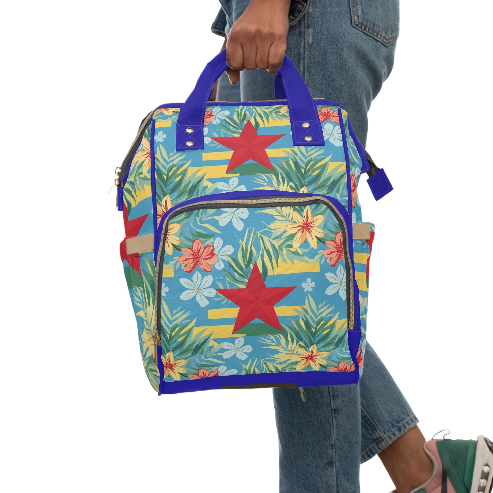 This unique design combines vibrant tropical florals with the iconic Aruba flag detail, making it both practical and full of cultural meaning. Perfect for families with Caribbean roots or anyone who loves a sunny, island-inspired touch in their everyday essentials.