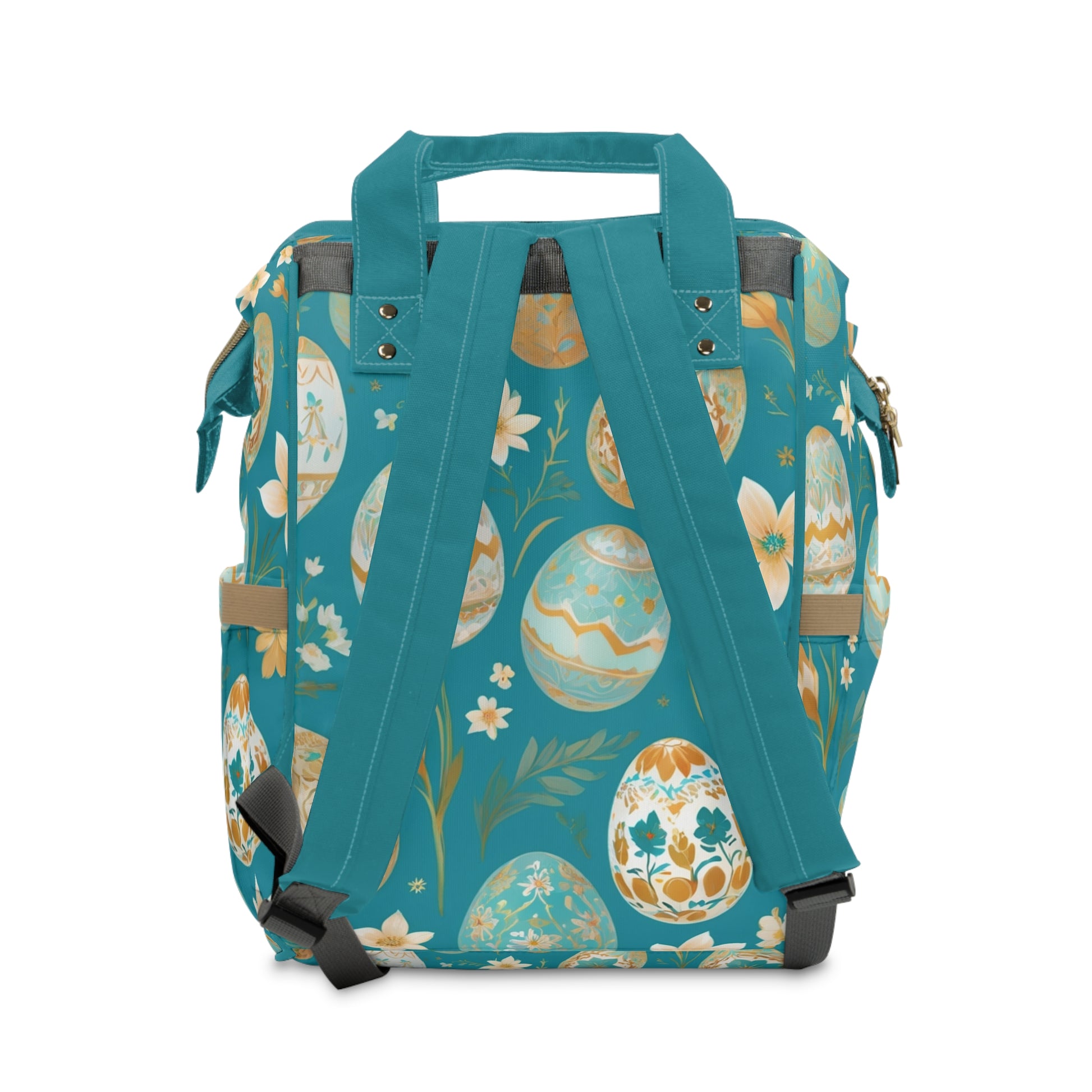 This vibrant design features a graceful goldfish surrounded by decorated Nowruz eggs and soft floral accents in turquoise, gold, and pastel tones. The Farsi inscription translates to “My son, you are my hope for tomorrow”, a heartfelt message of pride and love. Spacious, waterproof, and durable — this diaper backpack blends cultural heritage with daily practicality, making it a meaningful and unique baby shower gift.