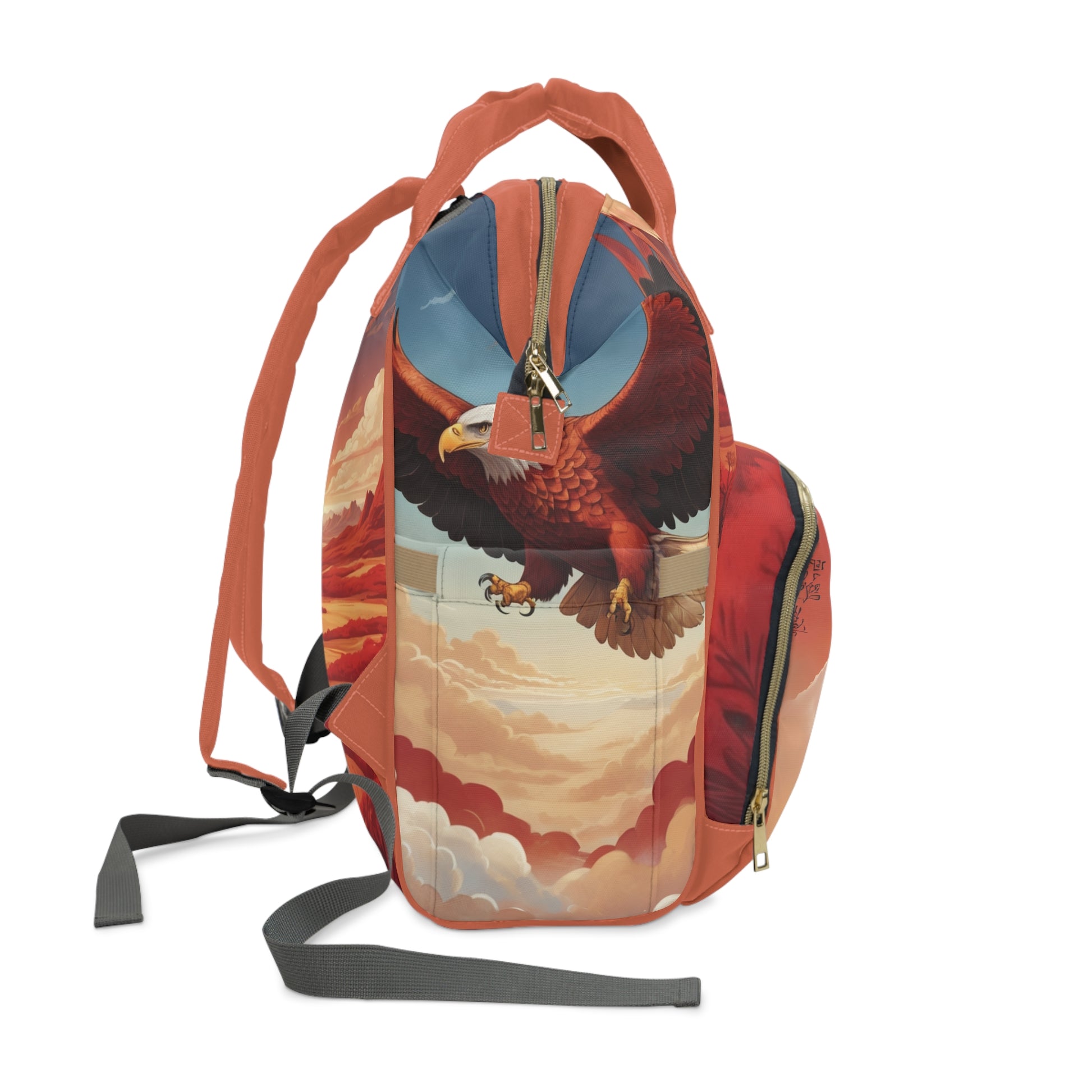 This design showcases young Nkrumah, a noble Akan prince, dressed in regal red-and-gold Kente while holding a staff beneath the outstretched wings of a powerful eagle. In Akan tradition, the eagle represents sharp vision, freedom, and guidance, making this edition more than a diaper bag – it is a symbol of strength and a meaningful keepsake for your little boy.