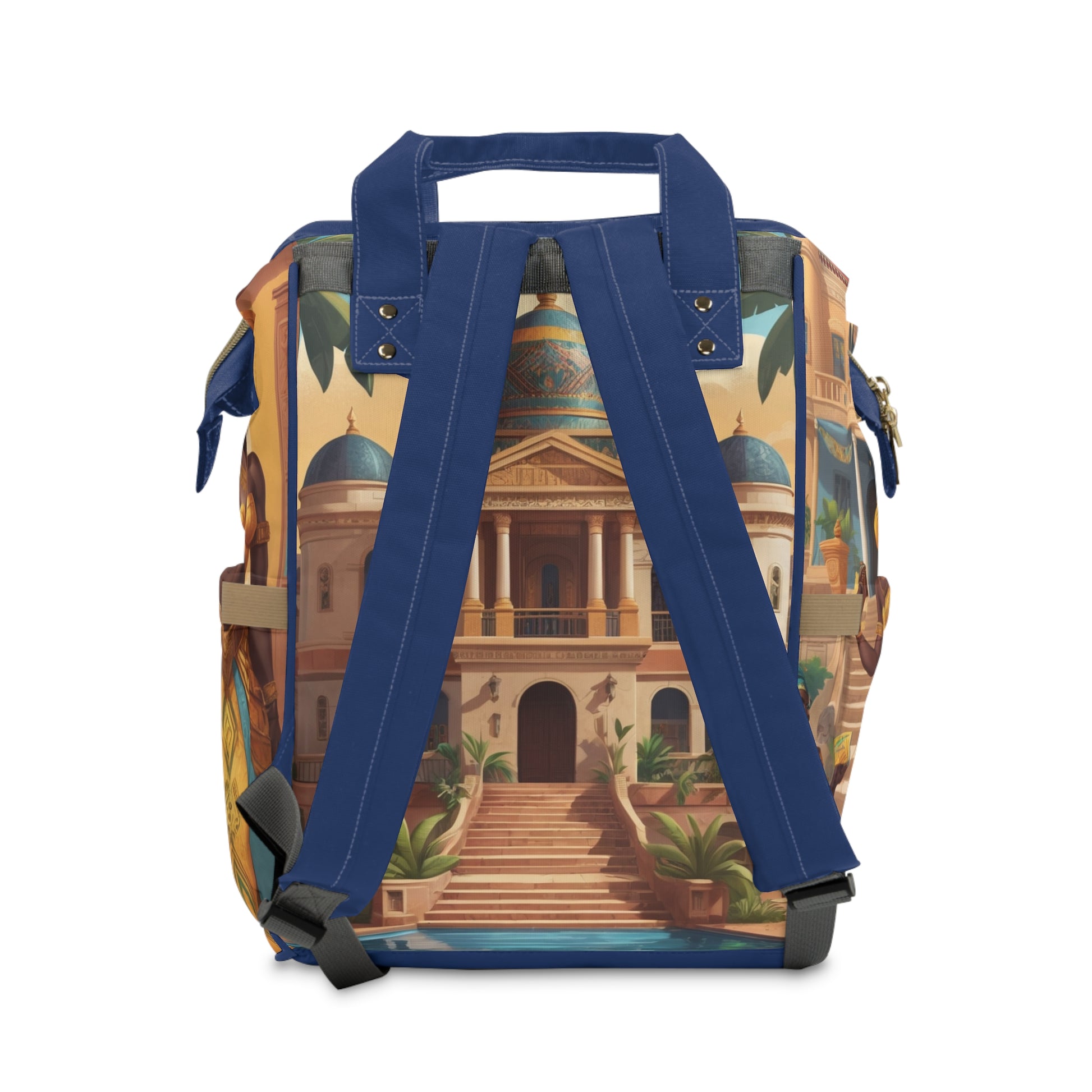 The Boys Ghanaian Kente – Royal Throne Prince Diaper Bag (Agyeman Edition) celebrates the timeless heritage of Ghanaian royalty. This design portrays young Agyeman, a prince dressed in deep blue Kente-inspired attire, crowned with gold and standing proudly before a majestic palace. The Royal Throne Edition symbolizes leadership, dignity, and the promise of a strong future, making it a treasured keepsake for parents who value both culture and practicality.
