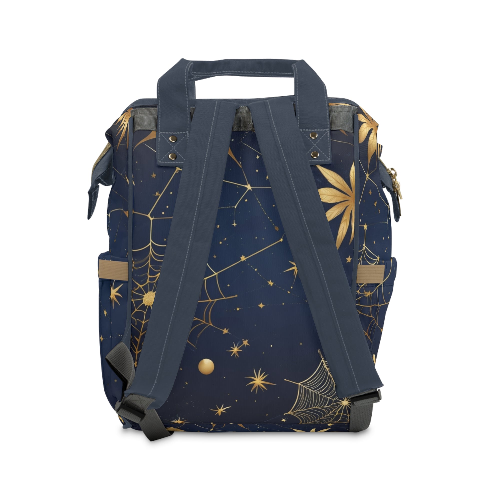 This enchanting design shows a little Surinamese boy holding a glowing moon under a starry night sky. Golden constellations and web-like patterns surround him, symbolizing dreams and protection. The slogan “Yu meki mi ati tan switi” (You make my heart stay sweet) adds a message of deep affection and emotional warmth. More than just practical, this backpack is a meaningful keepsake that reflects both love and culture.