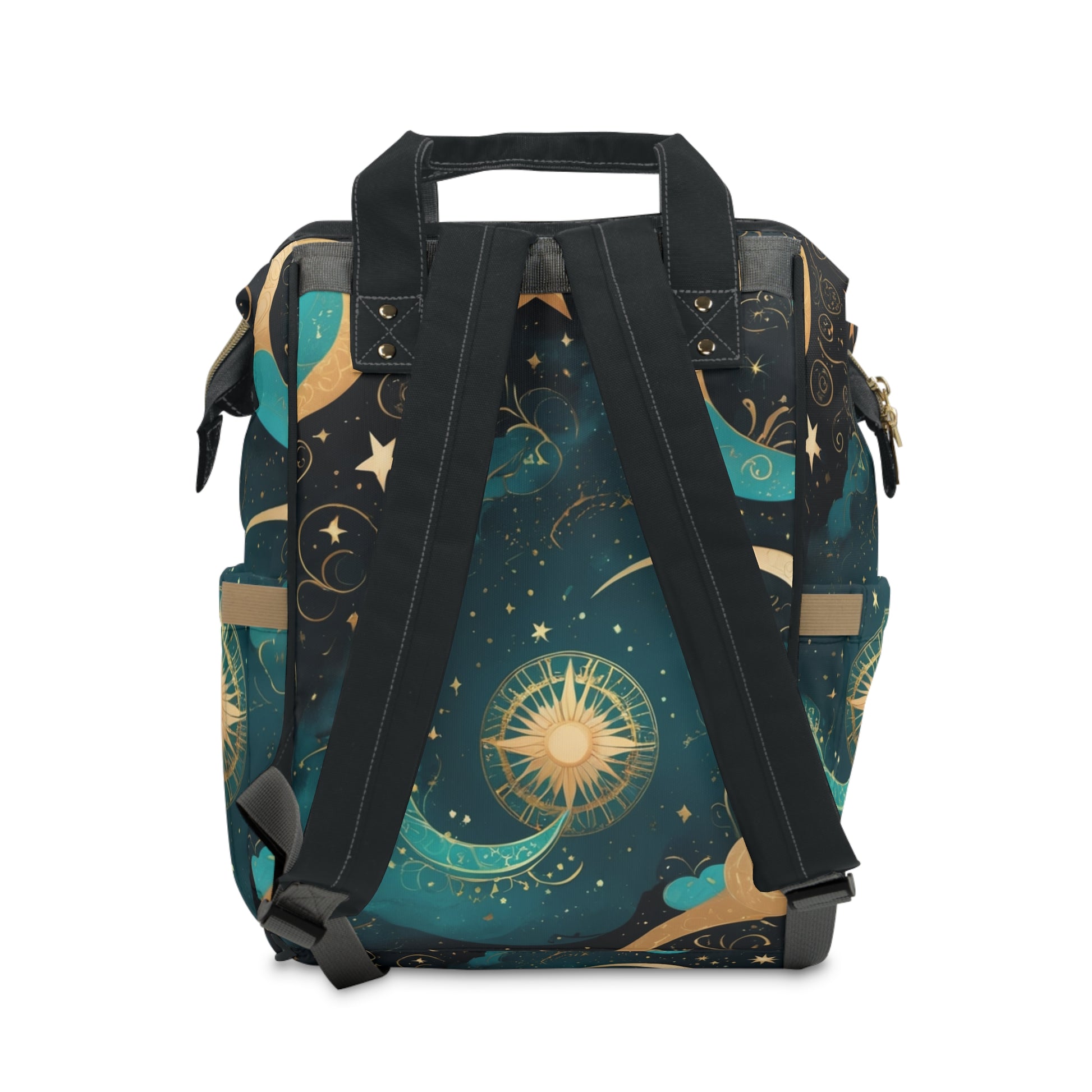 This enchanting design features a cute baby ram with golden horns, adorned in turquoise and gold details, standing under a dreamy starlit sky. Surrounded by moons, stars, and celestial ornaments, the Aries design radiates strength, playfulness, and charm. The slogan “Bold at heart, Bright in spirit” perfectly captures the spirit of Aries, making this backpack a meaningful and stylish gift.