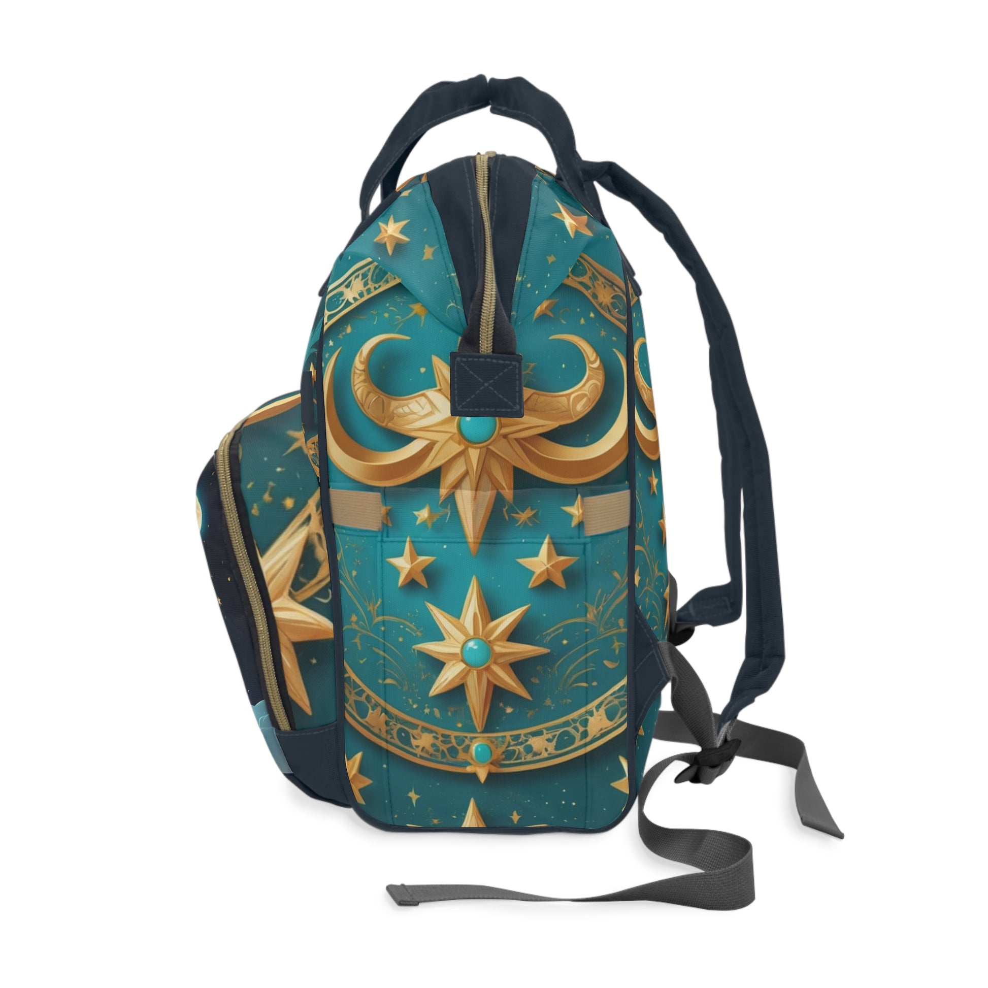 This powerful yet adorable design features a baby bull with golden horns, adorned in turquoise and gold ornaments, standing proudly under a starry night sky. Surrounded by moons and celestial stars, the Taurus design represents stability, strength, and love. The inspirational slogan “Strong in soul, Gentle in love” captures the true essence of Taurus, making this backpack a meaningful and stylish gift.