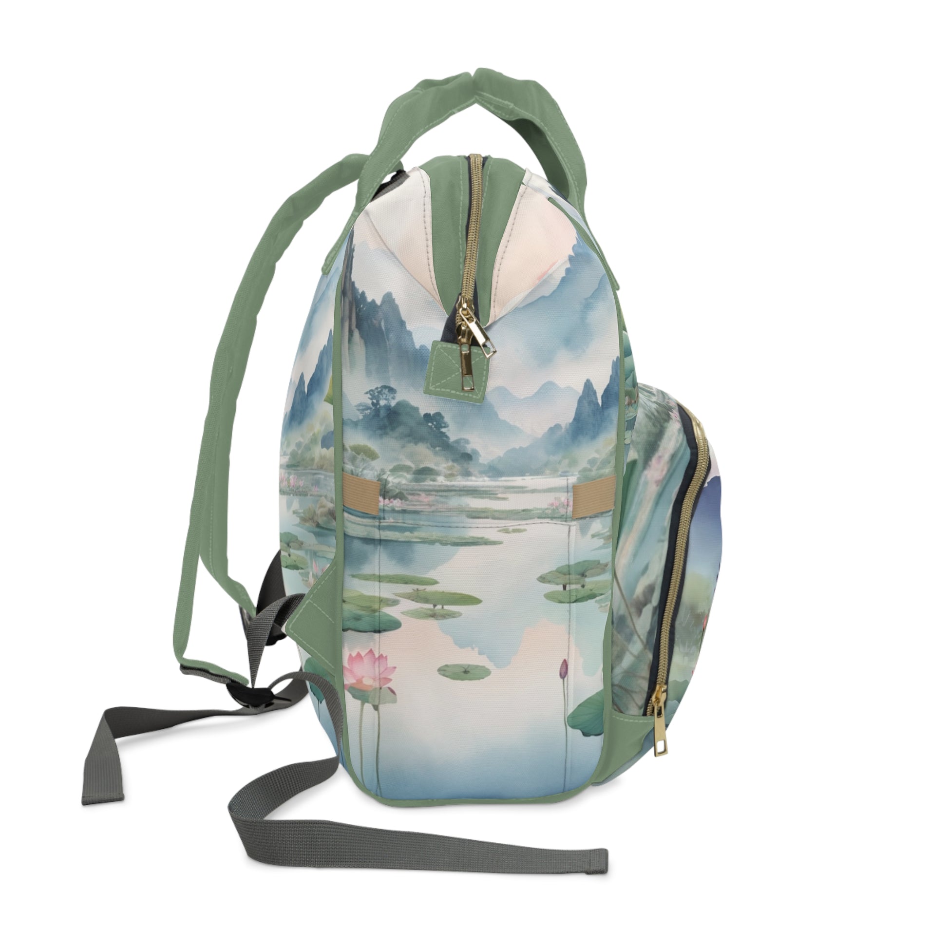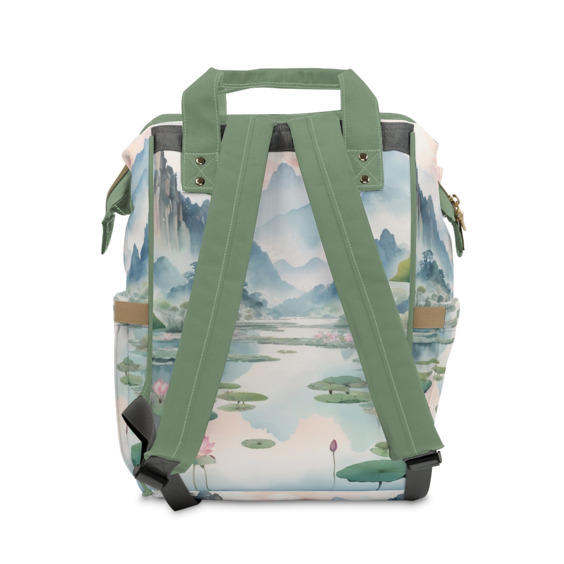 Celebrate grace and longevity with our Girls Diaper Bag – Chinese Fairy Crane Edition. This enchanting design features a majestic crane spreading its wings over a lotus pond, surrounded by dreamy mountains and soft pastel skies. In Chinese culture, the crane symbolizes long life, happiness, and wisdom, while the lotus flower represents purity and resilience.