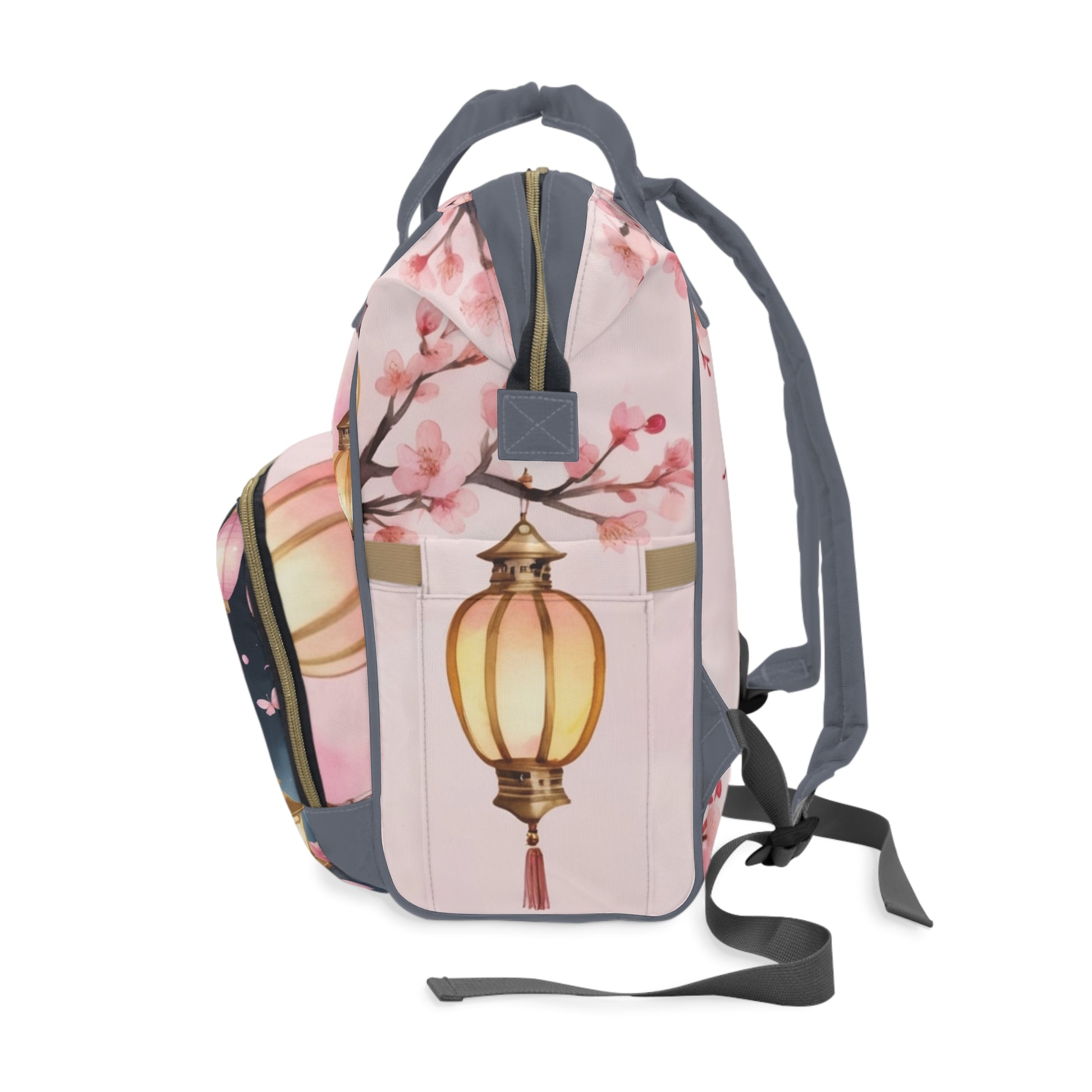 Bring peace and beauty into parenthood with our Girls Diaper Bag – Chinese Rabbit Blossom Edition. This adorable design features a playful bunny with a pink bow, surrounded by cherry blossoms, butterflies, and glowing lanterns. In Chinese culture, the rabbit is a zodiac symbol of peace, luck, and kindness, making this bag both meaningful and enchanting.