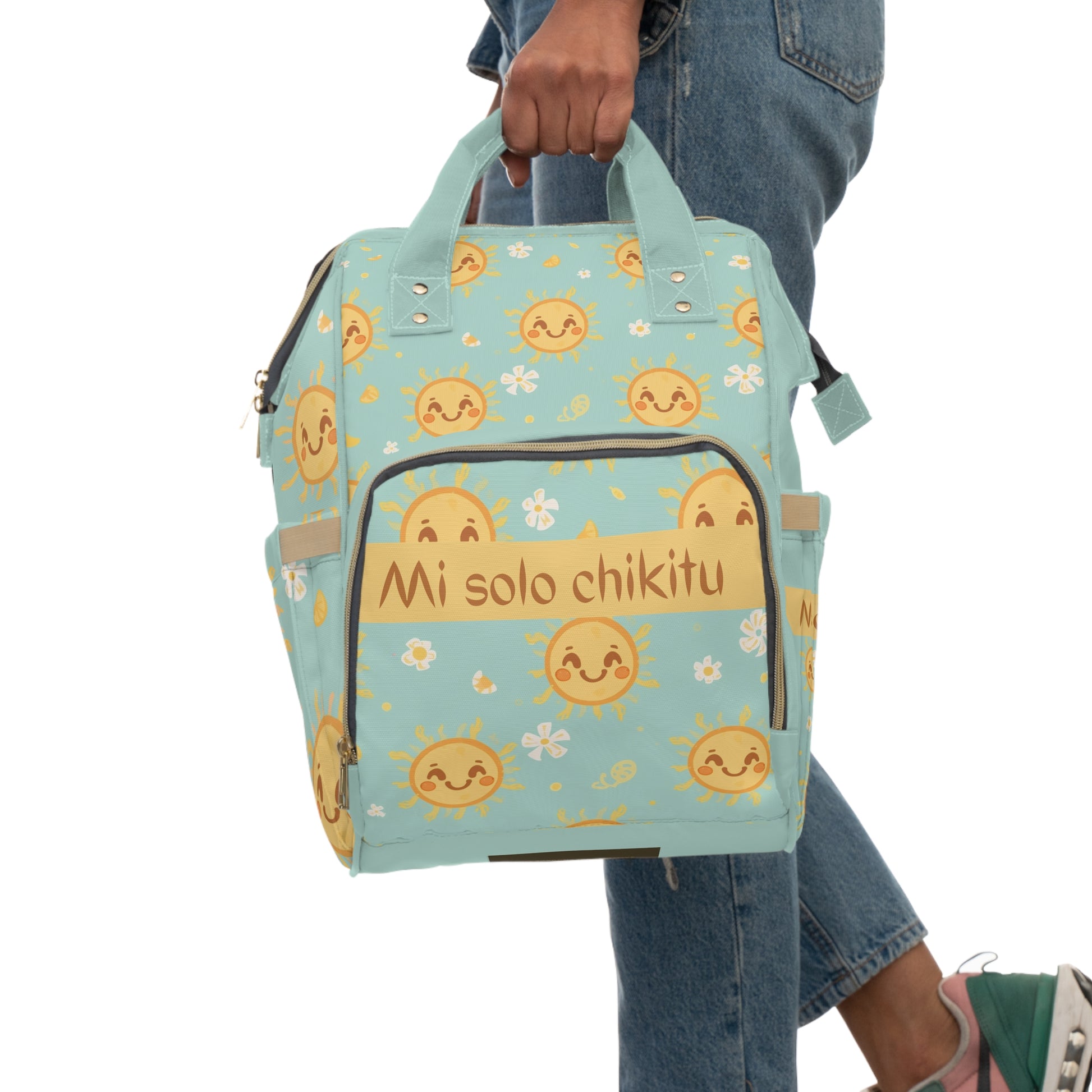 This Aruba-inspired design features a smiling sun surrounded by cheerful rays and soft tropical tones, symbolizing warmth, joy, and the vibrant spirit of island life. Waterproof, lightweight, and spacious — this diaper backpack is both practical and heartwarming, perfect for daily use, vacations, or as a thoughtful baby shower gift.