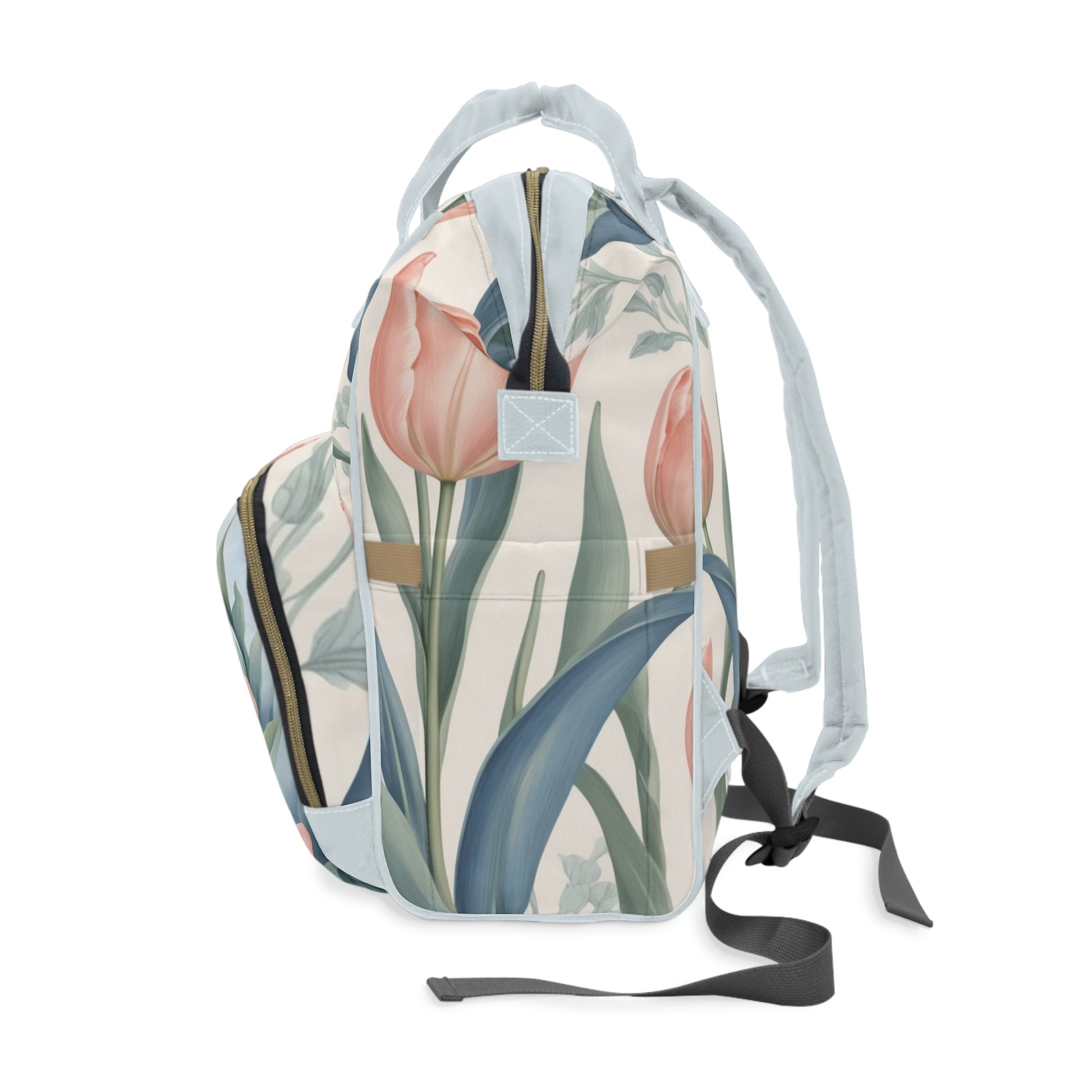Girls Diaper Bag Backpack | Personalized Deer Design | Delft Blue Inspired Baby Bag with Tulips & Pastels | Baby Shower Gift