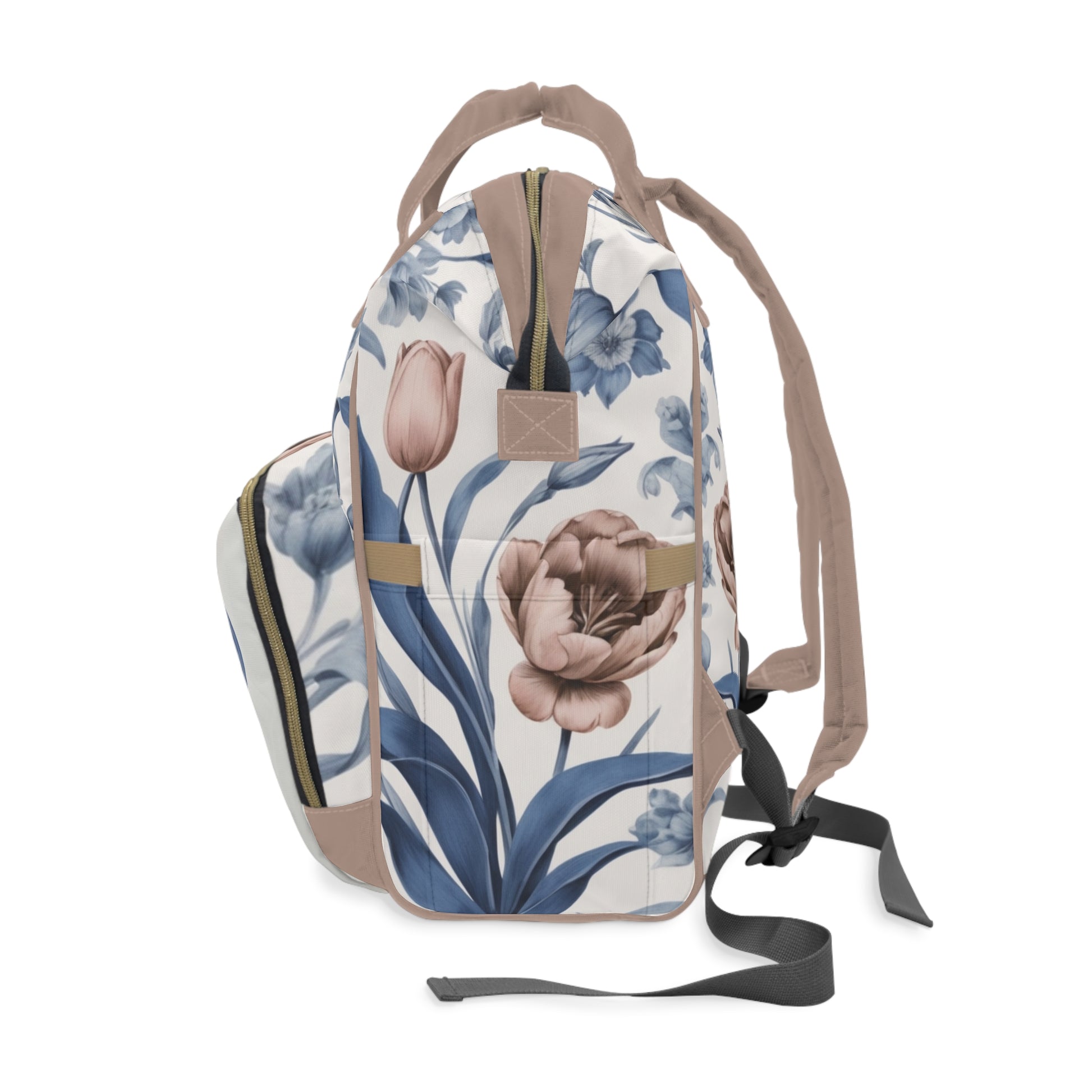 Girls Diaper Bag Backpack | Personalized Teddy Bear Design | Delft Blue Inspired Baby Bag with Pastel Florals | Baby Shower Gift