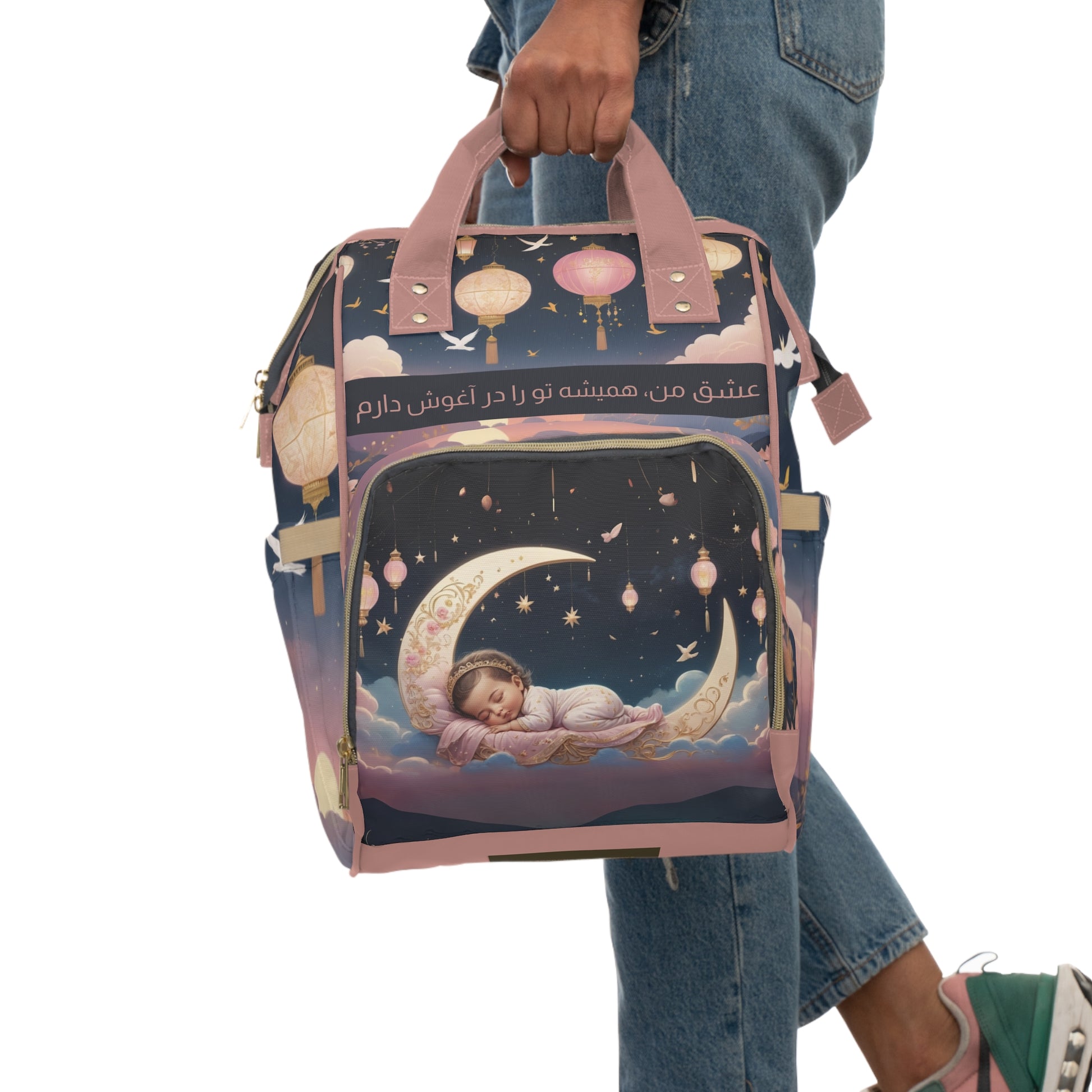 Girls Diaper Bag Personalized Farsi Baby Bag Moon Cradle Floating Lanterns Quote My Lov