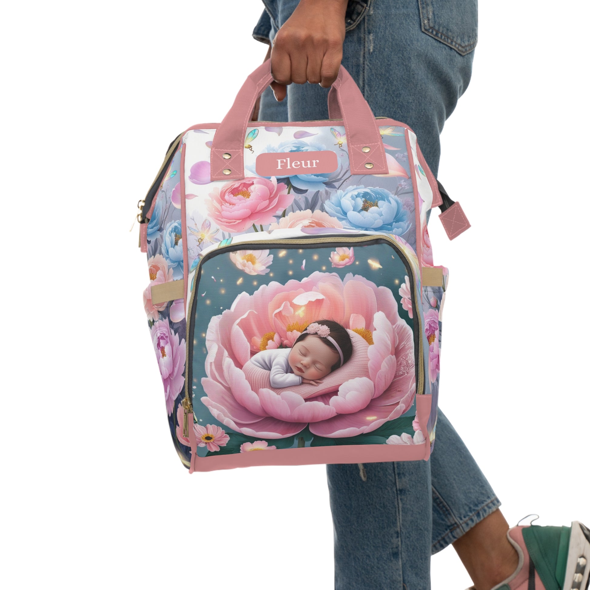 Fleur Peony Dreamer Baby Bag 🌺 Personalized Pink Diaper Bag