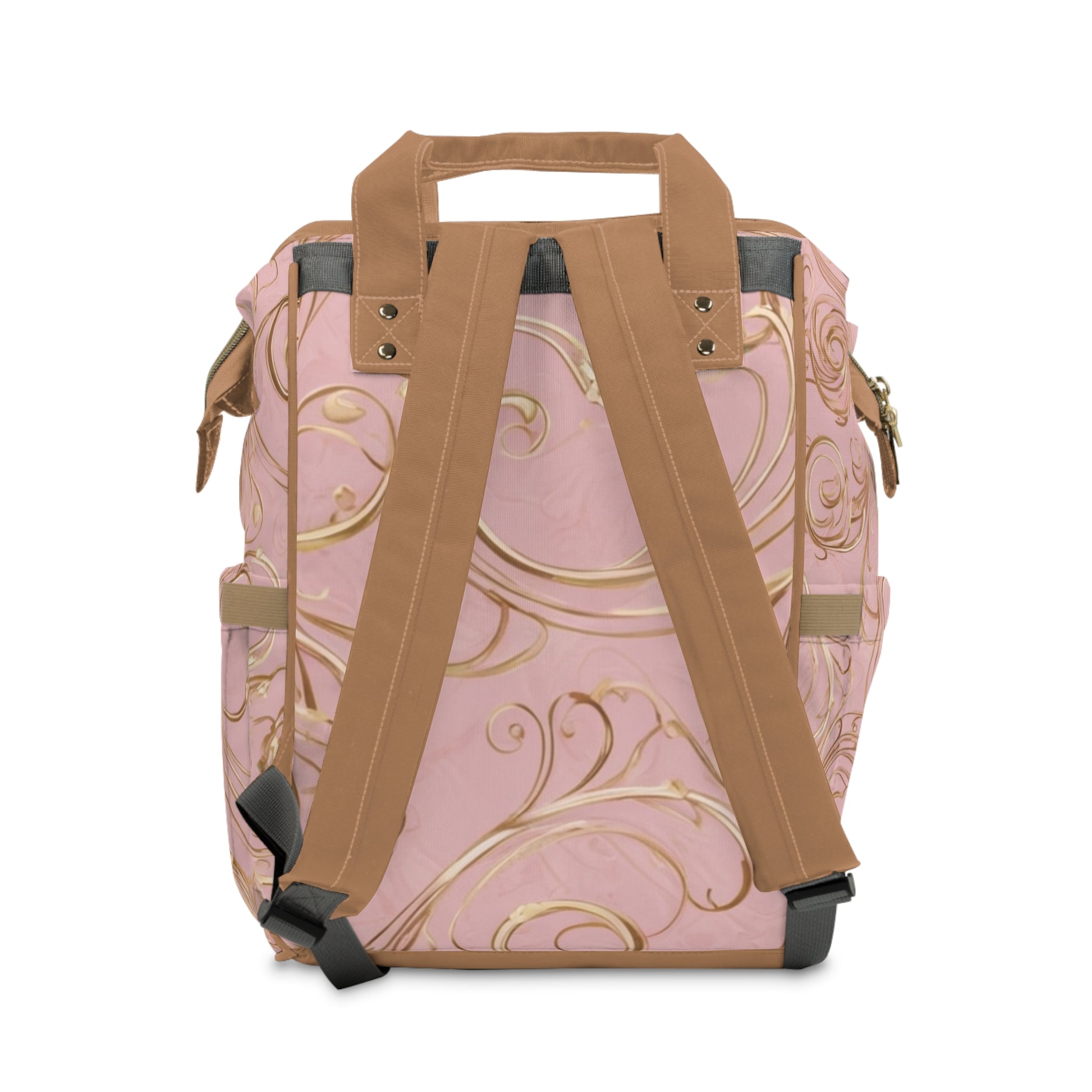 This enchanting diaper backpack features graceful golden swirls on a soft pink backdrop, creating a luxurious look that feels both classic and unique. Perfect for stylish mothers who want to celebrate heritage and beauty in everyday moments, this bag pairs beautifully with our matching accessories in the same collection.