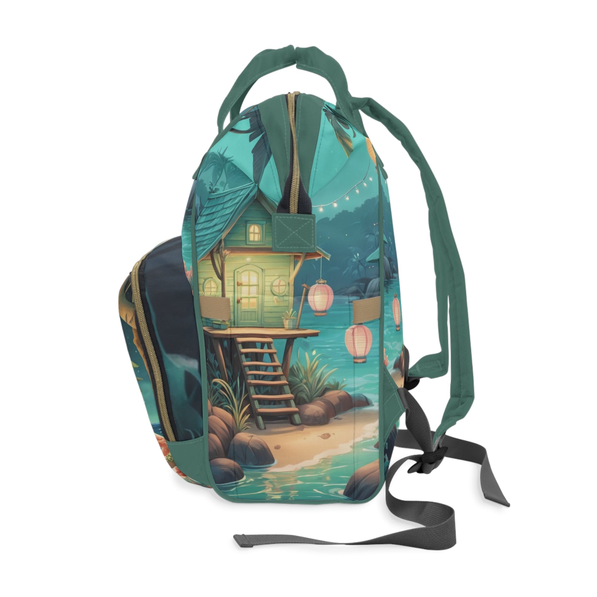 The Mateo Aruban Baby Bag is inspired by the charm of island nights and cultural heritage. In this enchanting design, little Mateo sits joyfully by the shore, dressed in soft mint green, with a tiny starfish resting gently in his hands. Around him, glowing lanterns and wooden huts by the lagoon create a magical setting that captures the spirit of Caribbean evenings. This design blends adventure, warmth, and culture into a timeless keepsake.