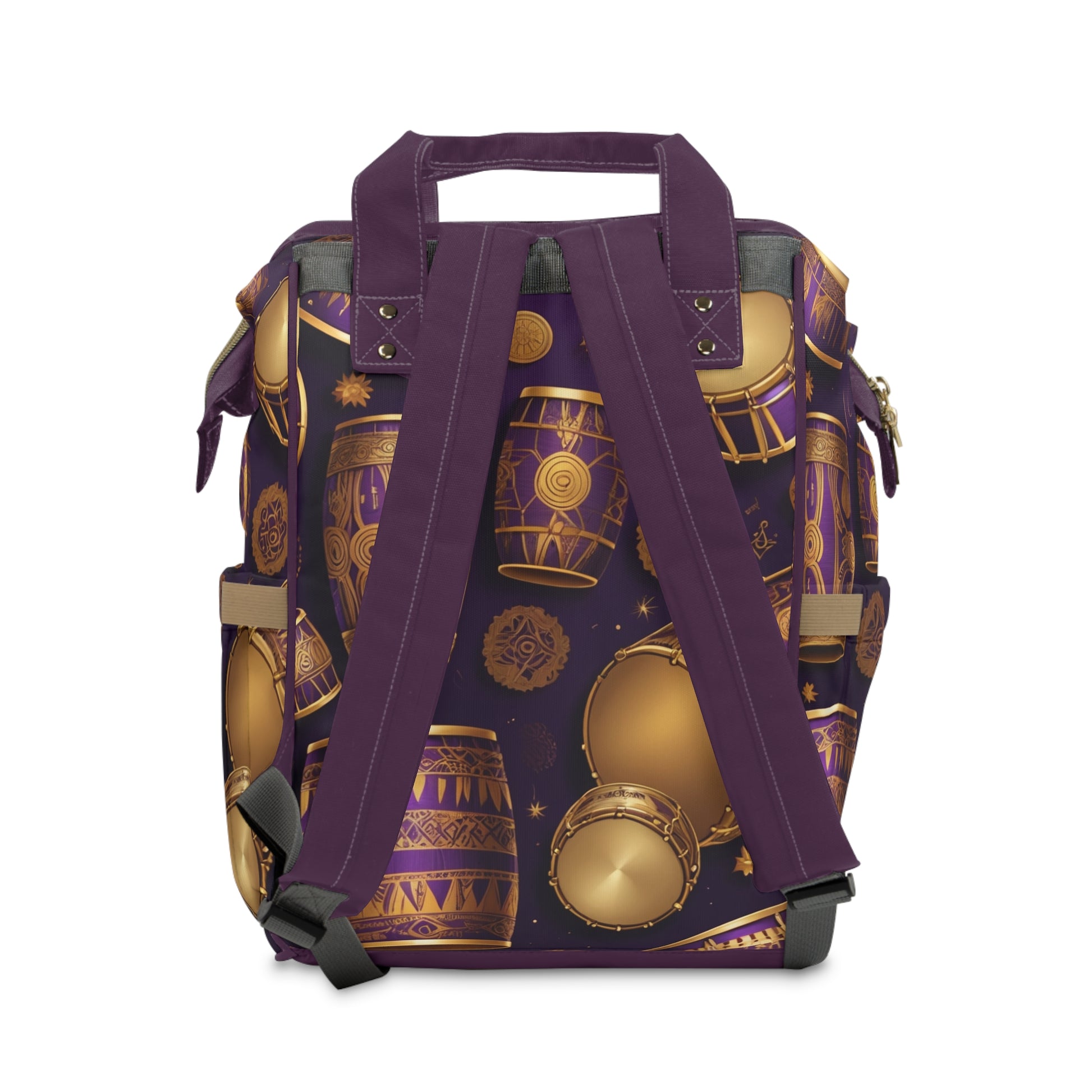 This majestic design features a baby princess dressed in regal purple with golden jewelry, seated among sacred drums and vessels that symbolize wisdom and abundance. The glowing aura behind her reflects her name Nkechi, meaning “Gift of God”, making this bag a powerful emblem of heritage, love, and blessing.