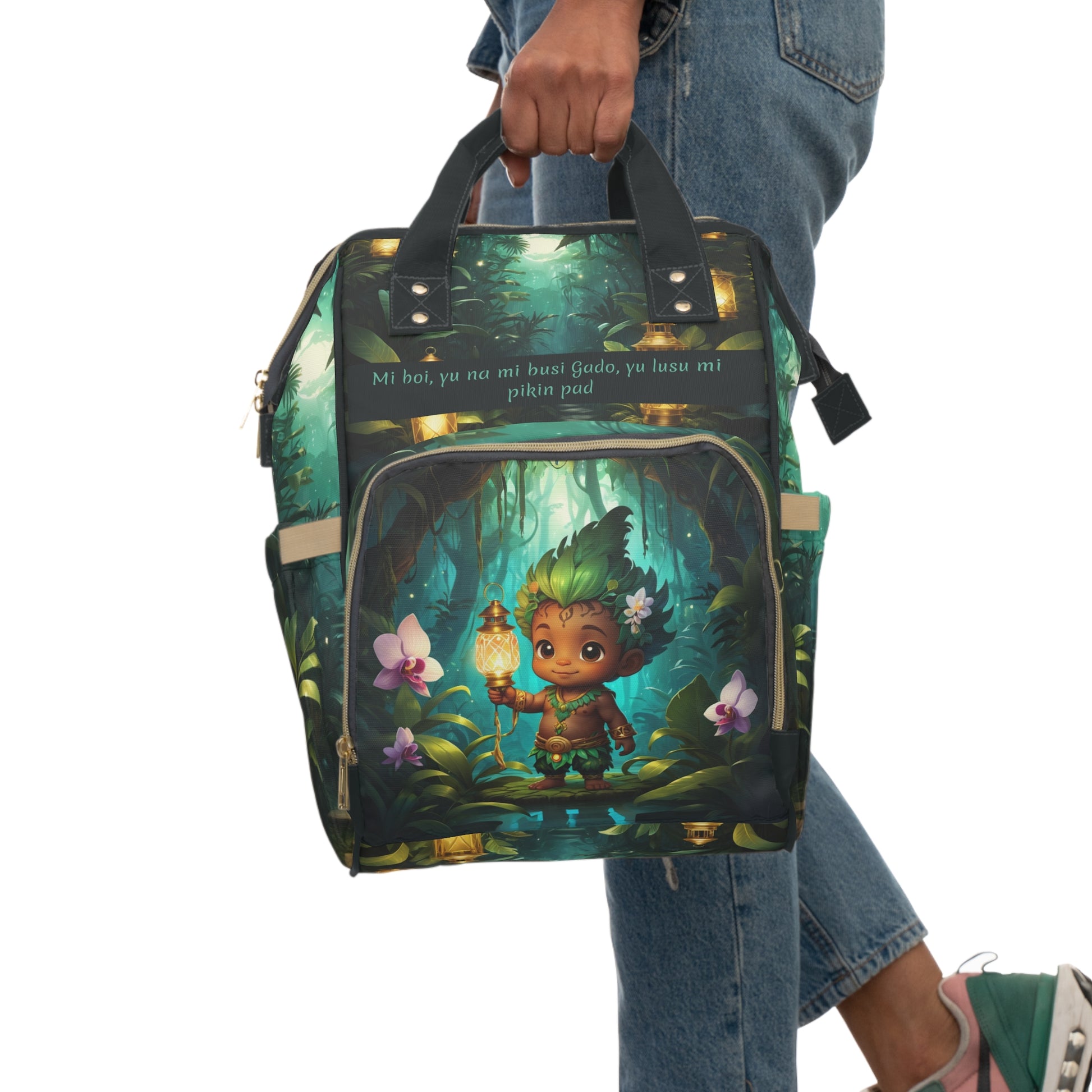 Boys Diaper Backpack Surinam Jungle Spirit | Personalized Baby Boy Bag with Forest Guardian & Quote | Unique Surinamese Baby Shower Gift