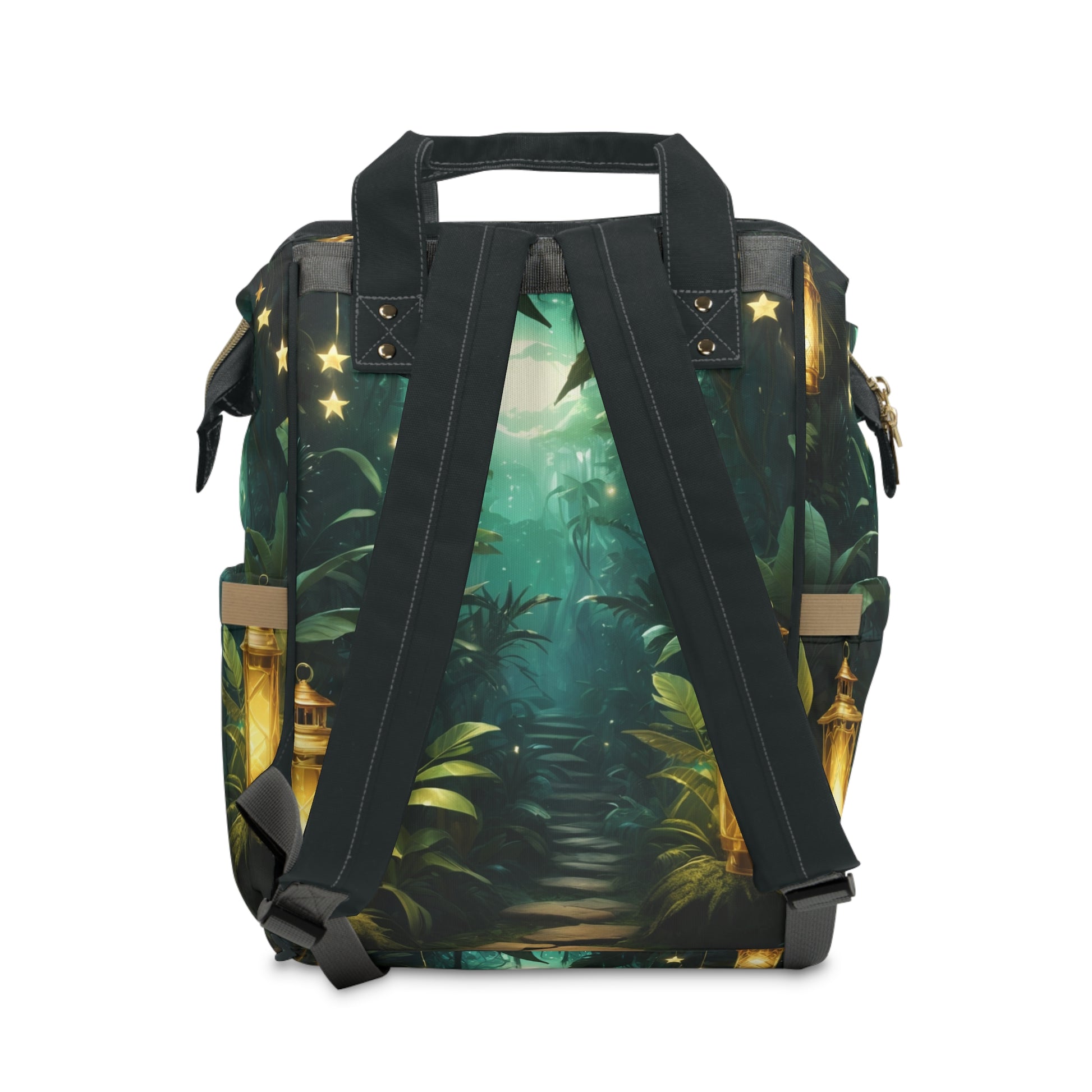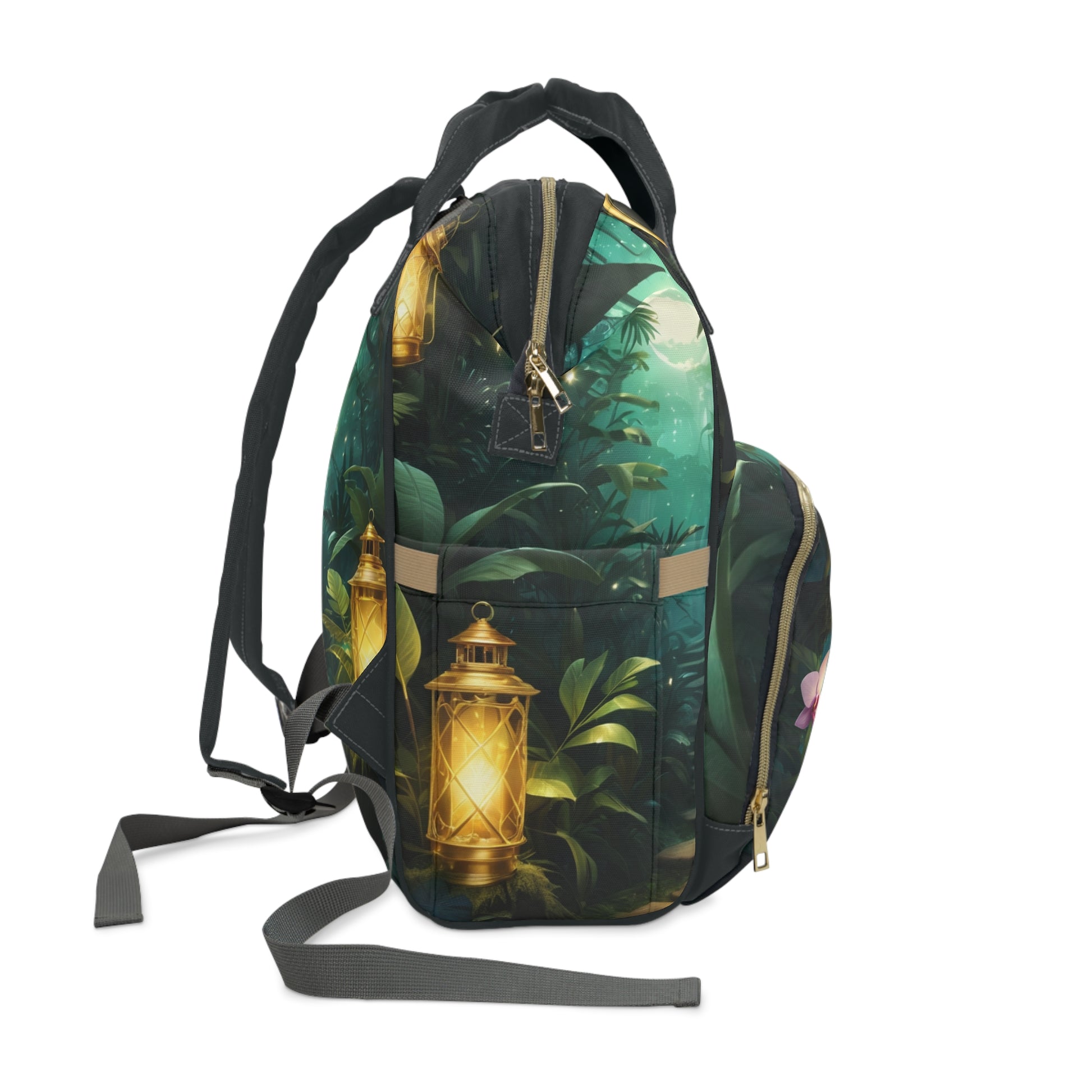 This magical bag showcases a little boy as the guardian of the forest, holding a glowing lantern beneath the moonlight and surrounded by lush tropical jungle leaves and orchids. The Surinamese phrase “Mi boi, yu na mi busi Gado, yu lusu mi pikin pad” translates to “My boy, you are my forest spirit, you guide my little path.” This heartfelt phrase symbolizes guidance, strength, and the deep cultural connection with Suriname’s natural beauty. More than just a practical everyday item, this backpack becomes a treasured keepsake full of meaning and love.