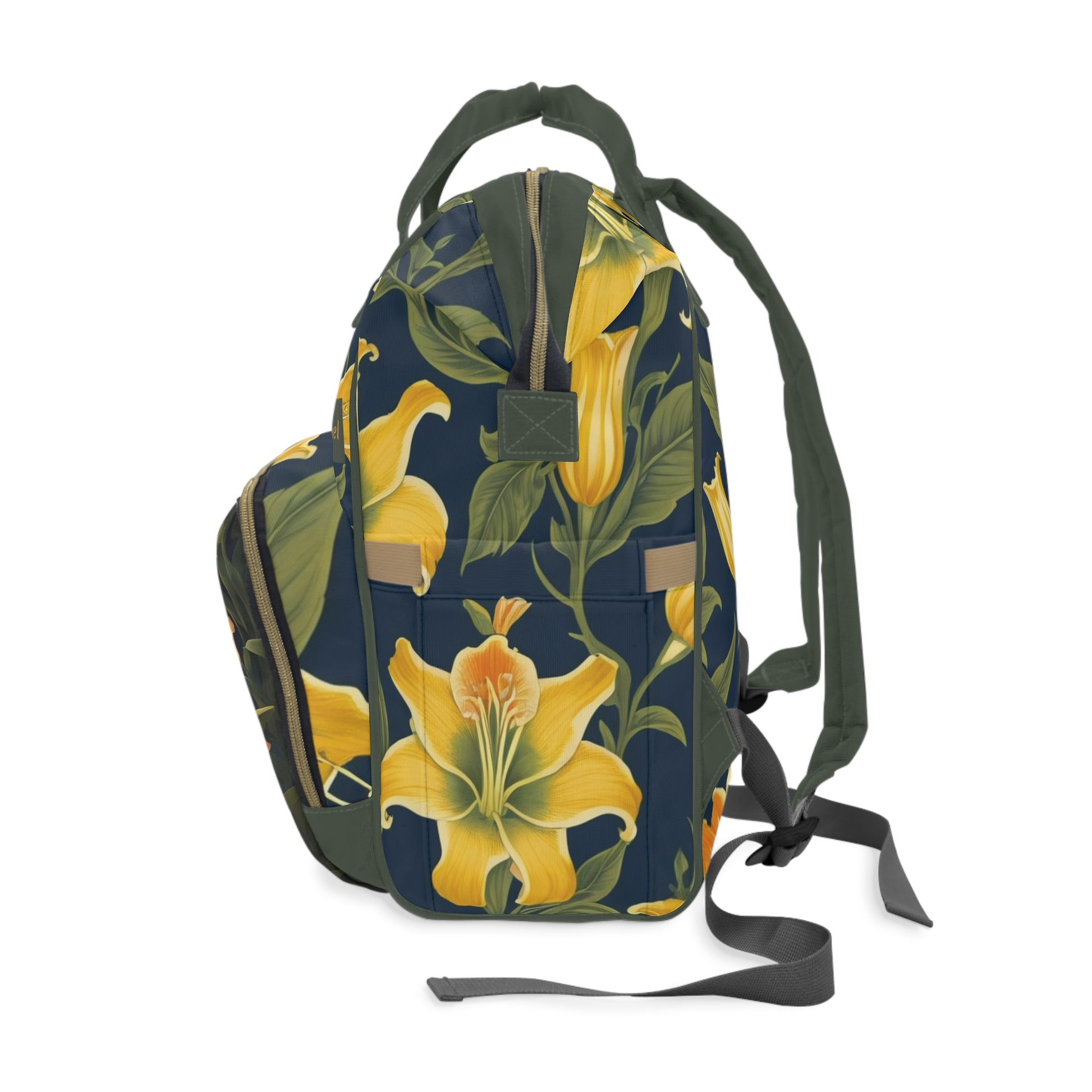 This enchanting design features an adorable baby boy sitting under a glowing golden moon, surrounded by vibrant yellow flowers and shimmering stars. The heartfelt text “Mi boi, yu bigin fu mi doti en mi hemel” (My boy, you are the beginning of my earth and my heaven) makes this backpack not just a practical everyday essential but also a meaningful keepsake that reflects the deep cultural pride of Suriname.